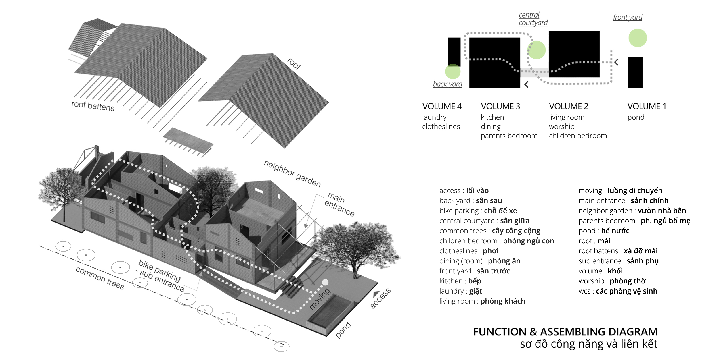 Được thiết kế cho một gia đình nhỏ gồm bốn thành viên, ý tưởng về ngôi nhà bắt nguồn từ những gì khách hàng nói với kiến trúc sư làm thế nào để thiết kế và xây cơ ngơi tương lai của họ với mức đầu tư tối thiểu kể cả việc việc tái sử dụng nội thất cũ, để dự định sống ở đó ít nhất mười năm. Thiết kế cũng như nhu cầu hiện tại của gia chủ chỉ có một tầng và một gác lửng nhỏ phía trên phòng ngủ con trai để làm nơi thờ cúng. Sau này khả năng cao sẽ có thêm nhiều chức năng hơn vì chắc chắn bọn trẻ đã lớn hơn. Trong trường hợp đó, chiều cao của ngôi nhà sẽ được nâng lên để có thêm một tầng phía trên phòng ngủ của bố mẹ để làm phòng mới cho con gái của họ, nay thì còn bé và ngủ chung phòng bố mẹ, và có lẽ với một sàn khác cùng cao độ phía trên bếp hiện tại, dành cho không gian sinh hoạt chung. Trong một khả năng khác, nếu chủ sở hữu có đủ vốn thì họ sẽ có thể bán căn nhà này cho một gia đình nhỏ giống như họ bây giờ để đến sống ở một ngôi nhà mới. Đây là lý do tại sao dự án được coi là thiết kế xây dựng tạm thời - “Temp House”. Bởi một lẽ, cũng gần ý nghĩa là "tạm" nhưng chúng tôi không nên vẽ sơ sài một căn nhà "tạm bợ" để khi khách hàng tích lũy được nhiều vốn liếng hơn thì họ hoặc là phá bỏ đi chẳng có nhiều nuối tiếc hoặc xây tiếp cái mới lên trên cái cũ với tình trạng chắp vá. Ngoại trừ một trường hợp các kiến trúc sư biết chắc rằng họ sẽ thiết kế một công trình cụ thể sẽ được tháo dỡ trong thời gian sắp tới giống như là việc cắm trại vậy.